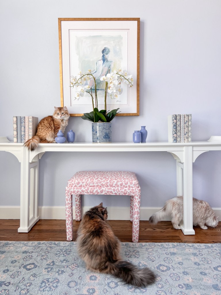 I’m Jordan, the creator and author behind this blog. I’m a maximalist and pastel enthusiast who is adding charm to her builder grade home. I love collecting floral fabrics, I love prints, I love color, I love books and I have 3 junior design assistants with 4 legs, fur, and a lot of opinions.